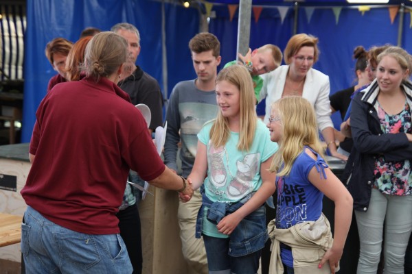 Dit jaar deden er alleen deelnemers t/m 14 jaar aan de taartenbakwedstrijd mee. Maar het niveau was er niet minder hoog om! Uiteindelijke winnaars werd het bakkerstrio Alisia Bruin, Gerritje Bakker en Maaike Brak. Zij maakten samen een pannenkoekentaart met een fles stroop. Tweede werd Poppe Bakker en de derde prijs ging naar Simon Bos.
